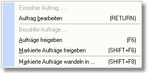 Die Auftragsfreigabe erfolgt entweder für alle oder für markierte Vorkasseaufträge. Damit ein Auftrag freigegeben werden kann, muss dieser "freigabefähig" sein, d.h. er muss bezahlt und die Zahlung muss in der Finanzbuchhaltung verbucht worden sein. |