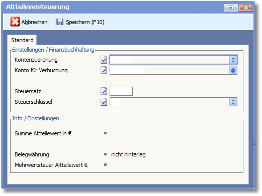 Tragen Sie hier das Konto ein, auf welches die Verbuchung der Altteileversteuerung erfolgen soll.