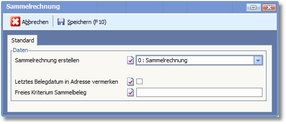 Hier können Sie ein freies Kriterium für die Sammelbelegerstellung hinterlegen.