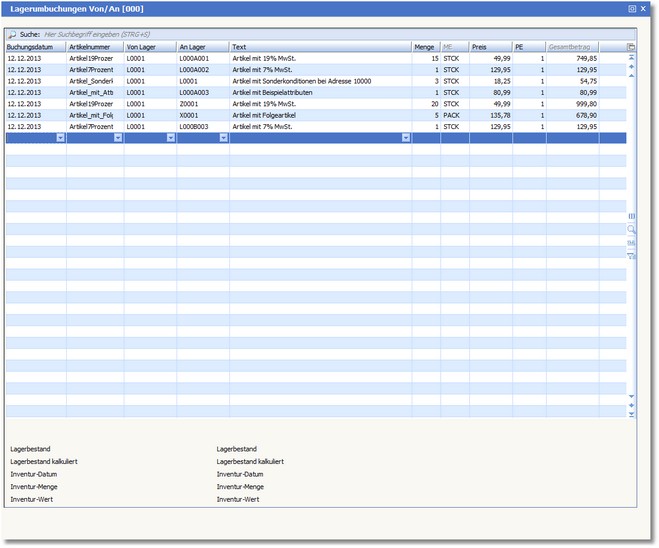 Lagerumbuchungen nehmen Sie immer dann vor, wenn Waren umgelagert worden sind und diese Umlagerung über verschiedene Lager erfolgte.