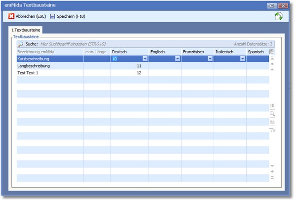 Hier wird die Zuweisung der Textbausteine in der BüroWARE angezeigt und erfasst.