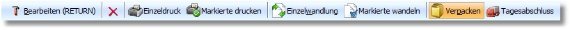 1. Wählen Sie den zu bearbeitenden Beleg aus und klicken Sie mit der Maus auf den Symbolbutton <Verpacken>.